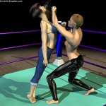 | In the preliminary round Biker Bitch was pitched against a Japanese fighter called Miko who turned out to be no match for the Biker. On the first day the Biker beat Miko with a series of brutal punches, finishing her off with a massive uppercut punch followed by a left hook to the jaw that literally lifted the young Japanese woman off her feet. | |||