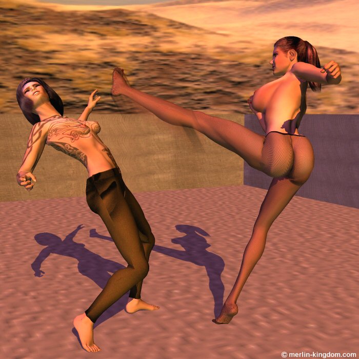 Kiri stumbles backwards and Sonya hits her with a massive straight kick to the face ...