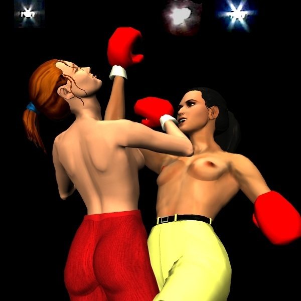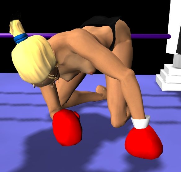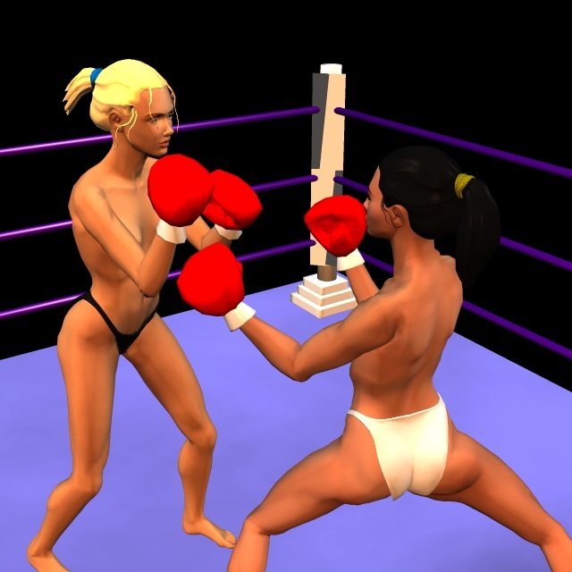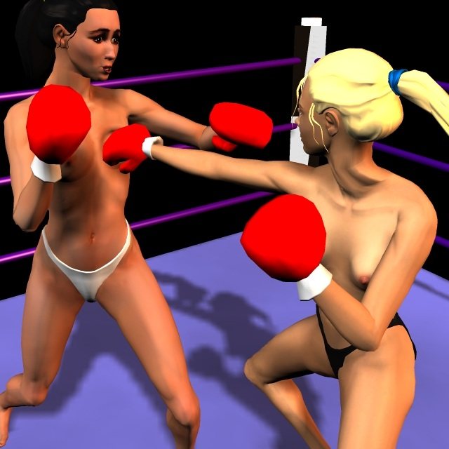 Katy helped Cindy on with her gloves and gown and then escorted her out of the dressing room into the Club. By now Cindys heart was hammering away in her chest and she was taking deep breaths to try and keep calm. The two girls threaded their way between the tables across the floor of the club until they got to the ring. Cindy stepped between the ropes into the dazzling glare of the lights and was greeted by cheers of encouragement from the audience. She looked towards the opposite side of the ring to see Gabriela standing calmly with her arms resting on the top ropes. Cindys nervousness increased to see her opponent looking so composted and confident.