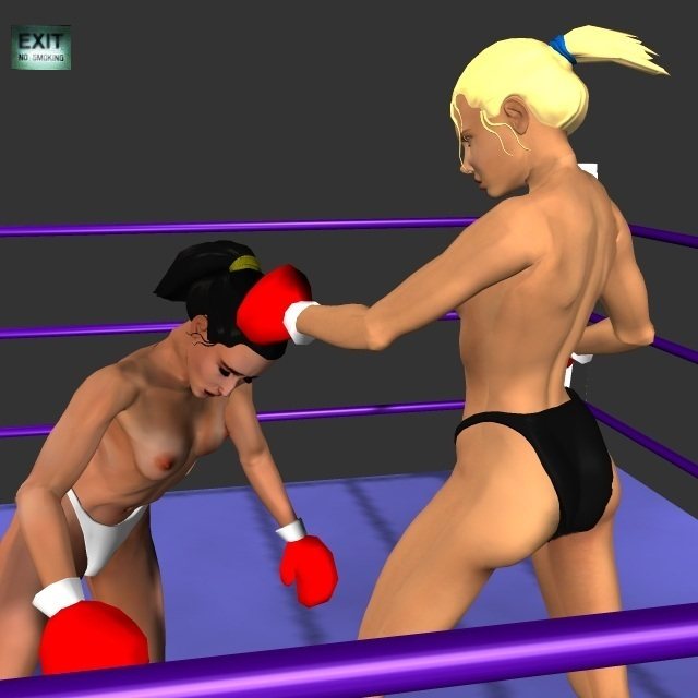 Cindy counter attacked with a succession of stabbing punches to Gabis breasts and belly that left the Spanish girl