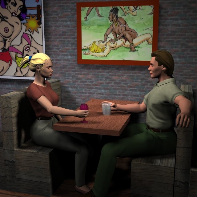 Once Gabi and Tina had left the ring Cindy got up from the bar