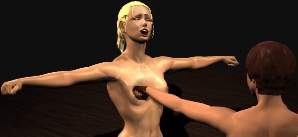 Cindy's right breat was torn upwards by the force of the punch