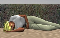 under Leeha's chest, clearly knocked out by the impact of Leeha's