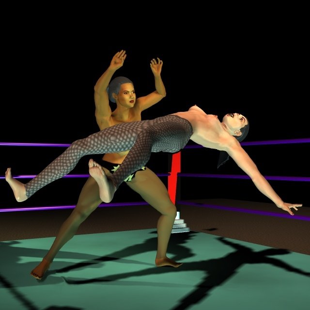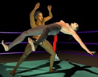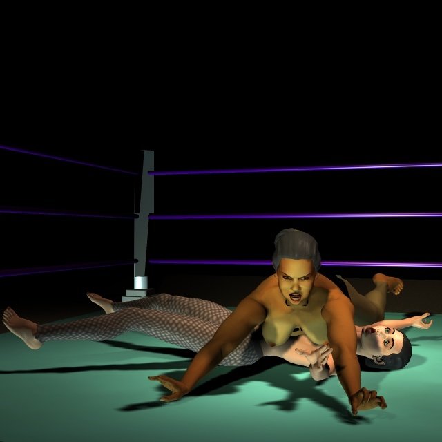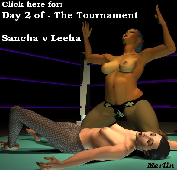 The light was terribly low when Sancha took up her place, there was really only just enough illumination to climb through the ropes and identify the red post. She could see Leeha getting into the ring on the other side, but the lights were too low to really make out her details. Sancha and Leeha stood still for about 10 seconds in the half-light until a voice boomed out.