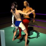 Sancha spent the afternoon swimming and working out in the gym, sweating off her hangover. She and Marco spent the evening in the apartment discussing tactics for the next day. They agreed that it would be fatal for Sancha to get into grappling combat with Leeha. She needed to keep clear of the Algerian's grip and go for the big blow that would bring the heavyweight girl crashing down. They decided that if the Algerian managed to get into close combat, Sancha would submit at the first opportunity before she suffered any injury. This would bring the match to a draw and she would then have another chance in the "sudden death" play-off.