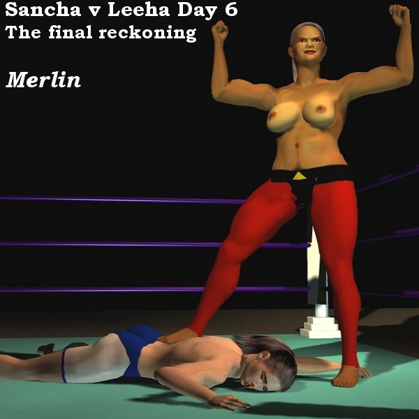 Leeha manoeuvred Sancha into the middle of the ring. It was obvious now that the Spanish girl was only barely conscious and that it was only Leeha's firm grip on her head that was keeping her on her feet.