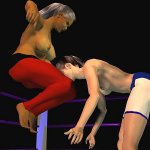 "And this one's for my daughter Crista" snapped Leeha as she threw an especially hard straight kick into Sancha's body. The Algerian's shin thudded into the Sancha's groin with such force that it lifted her about a foot into the air.