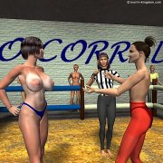 rules: The match I was asked to referee was to be fought to settle a dispute over a man! One of the KO Corral members had been fucking another member's husband and the wife had found out. They had tried to sort it out in the usual fashion, but when the "guilty party" had refused to stop, the wife decided to challenge her to wrestling match in the Corral. So at 7:00 pm I stepped into the KO Corral ring dressed in my new referee kit and called the small audience to silence...... |