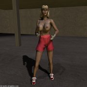 own. She presumed that they would supply her with these things. She entered the darkened basement wearing her sexy pink shorts, matching red trainers and a red striped bandana. She had lightly oiled her body to give her skin a silky sheen. She thought she looked sexy and she hoped that this would help her get a job. |