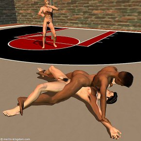 Continued from part 1..... The Mohican tags out to Bob. As the Mohican steps onto the free-throw zone, Bob strides out into the fight zone and circles round behind his opponent, Willow. Here is a selection of 4 thumbnails from the story |