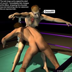 Zeb won the 1st round from the Biker Bitch by a folding body pin. The action continues now in round 2 after a break of 15 minutes.