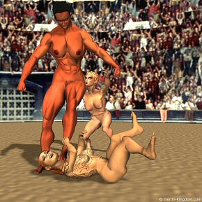 (the redhead) and Gerta (the blonde) get the massive Amazon warrior in real