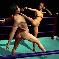 Claudette and Haiko entered the ring and posed for the cameras. Claudette wore a pair of pantyhose while Haiko had chosen to fight naked.
