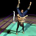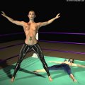 | Biker Bitch was drawn against Zeb, a Canadian male wrestler, in her quarter final match. This was a hard, brutal match that was fought in the nude. The match went to three rounds; Biker Bitch lost the first to a folding body press, then took the next two by a pin and a submission. Here's some of the highlights from the action: | ||