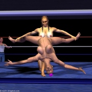 Saturday night at Bob's place. Now at this point I should tell you that Bob is rich, I mean seriously rich! His father built up a large industrial empire before dying suddenly of a heart attack in his early 60s. Bob inherited control of the whole thing and promptly sold it for a huge amount of money. So Bob has houses all round the world in all sorts of exotic places and anything he hasn't got he can buy - usually without thinking twice about it. Bob and I have been friends since college and we share his one great passion - femfighting. Bob is a big sponsor of femfight events and he's the money behind the Ring of Flames Club. It was at a Ring of Flames event that Bob first met Tamara, his current girlfriend. He fell for her after seeing her defeat a big burly guy called Joel who had been destroying all-comers for several weeks at the Club. Now Bob has become totally obsessed with Tamara. She is a really strong and athletic girl who loves fighting and fucking in that order, and from what Bob says likes to mix the two together. Some days Bob can hardly walk after a night in the pit with Tamara! The harder Tamara has to fight in the ring the better the sex, so Bob is committed to testing her to her limit, but so far he hasn't found anybody who can take her down. So now it is Saturday night and we are in the basement of Bob's private gym where we have set up a wrestling ring. There's just me and Bob and the two girls - Amanda (aka The Punk) and Tamara. Bob will act of the Referee and I will be the sole audience. Here are 6 thumbnails that show some of the action from the story: |