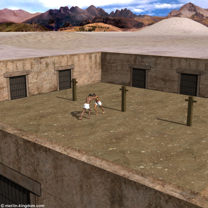 And so early in the morning, when all of the other gladiators had decided to sleep late, Cynthia had kept her word and joined Akeira for some wrestling practice.