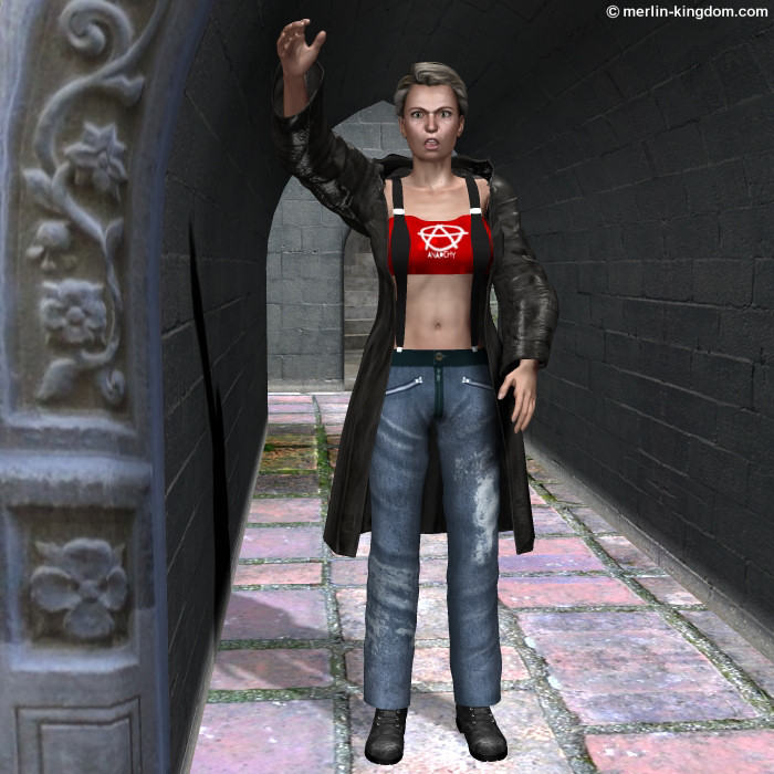... but then Matilda the community leader appeared at the entrance. She was wearing the black robe of a judge over her usual casual clothes.