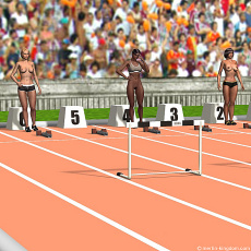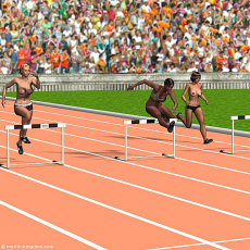 starts with three scenes from the hurdle race and then shows nine scenes