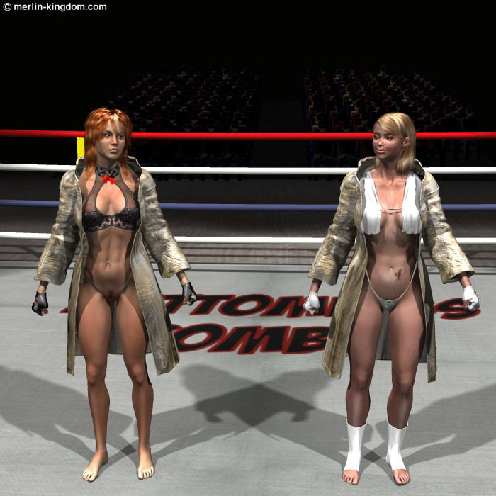 announcer to introduce them to the crowd. "So you have come back for more eh Stacy?" whispered Cherie. "Looks like I didn't teach you a good enough lesson last time!" Stacy didn't reply, but looked knowingly towards her opponent. The announcer's voice then rang out: "This fight is an invitation sponsored match between... from the red corner the world topless boxing champion Cherie "Kiddo" Kozanik, and from the blue corner an amateur fighter making her first public appearance in the ring - Rocky Hills." Cherie chuckled to herself .... so Stacy Ironside was fighting under a "stage name"... Rocky Hills... how corny! The announcer continued "The sponsor of this fight has put up a sum of $100,000 for the winner!" |