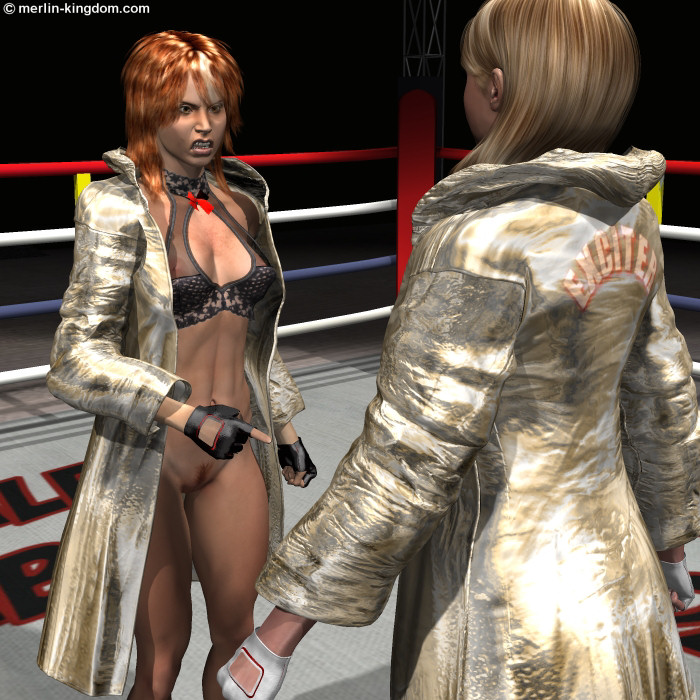 Instead of moving to her corner Stacy turned to Cherie and pointed at her panties. "Hey.... this is meant to be a bottomless fight. Why you wearing panties?!"