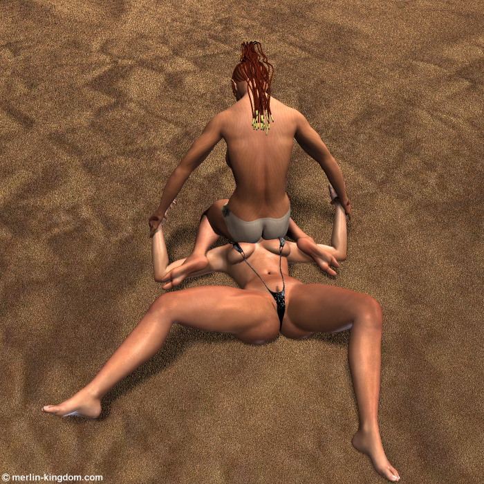 The alien pulls herself forward and then bounces on Loretta's chest.
