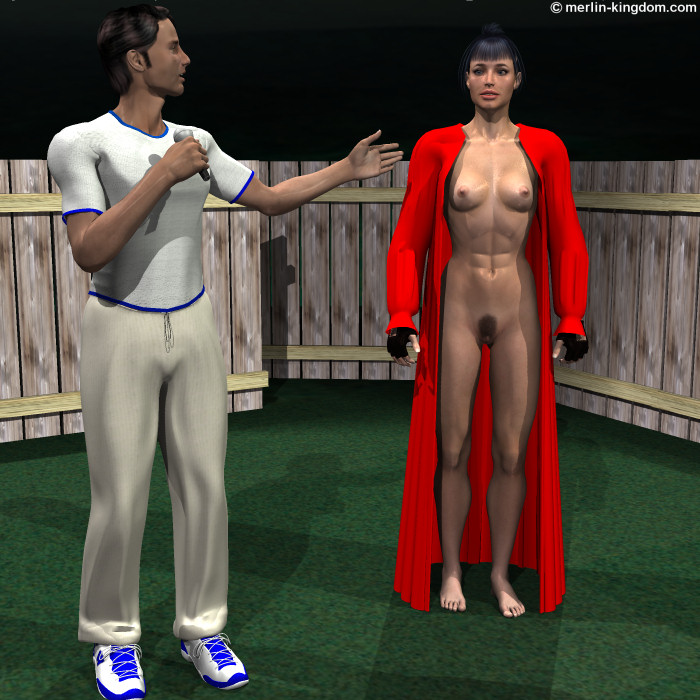 Hanna moved to the side of the stockade and Rena entered wearing an elegant red robe.