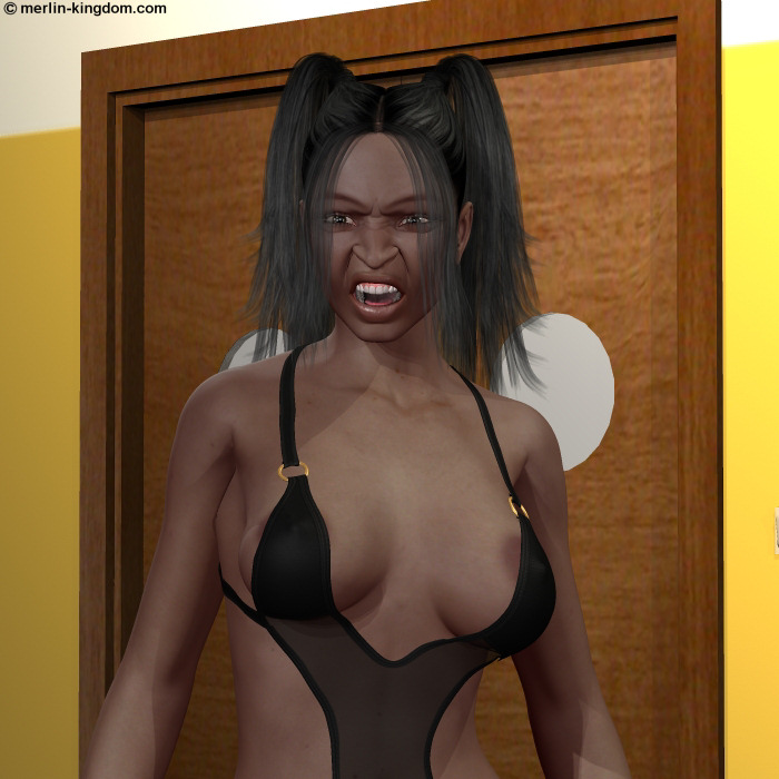 The black woman hissed at Cyrene, "I'm going to beat the crap out of you, WHORE!"