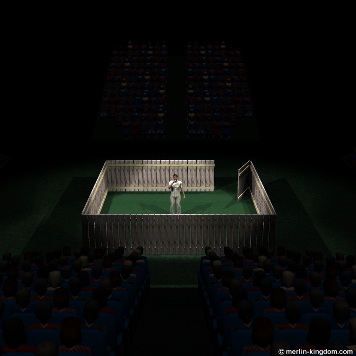 The capacity crowd cheered and whistled as Richard opened the stockade gate and entered the wooden ring. He stepped forward and stood in the center of the stockade. The spotlight illuminated him.