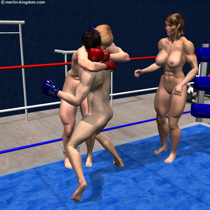 Marc attempts to punch Abby, but she clenches him and they tie up on the ropes.