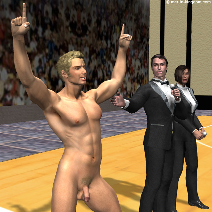 .... Chapman! He is considered to be the favourite to win the fight. He has easily beaten most of his competitors for the last several years, so nobody serious believes that any women can beat him! He raises his fingers arrogantly as he acknowledges his supporters' cheers. |