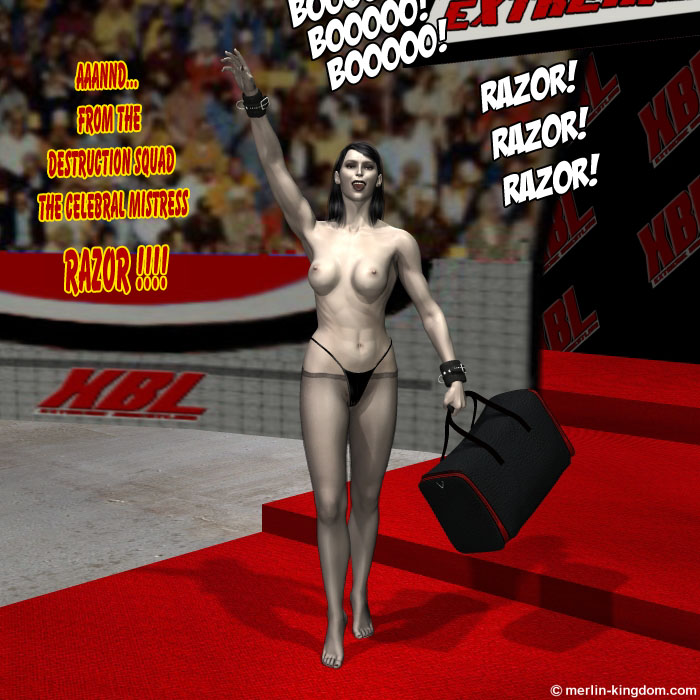 She is followed by Razor who is getting a mixed reaction from the crowd. So many fans love to boo the Cerebral Mistress! As usual she is carrying her bag of goodies which she has brought with her from the WCF.
