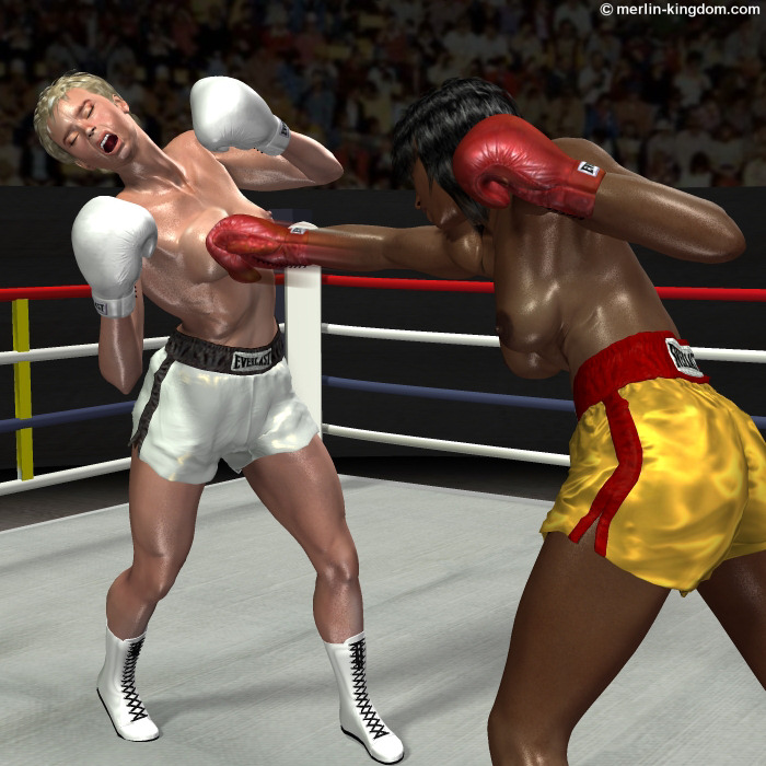 But again the challenger comes right back with body blows. Oooohh - that was a brutal straight right to Cherie's breast!