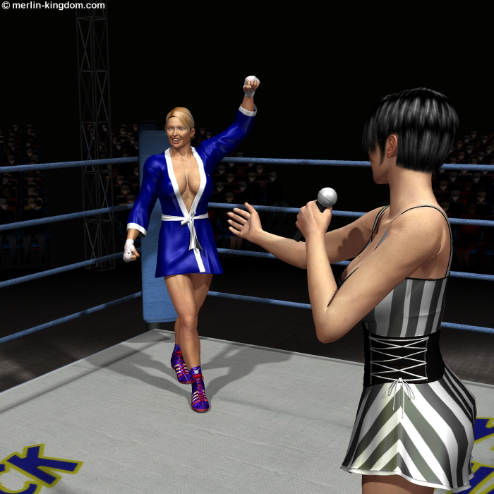 "In the blue corner at 5' 7" and 143 lbs from Sweden, the reigning European Topless Boxing Champion, MARILYN LINDSTROM!"