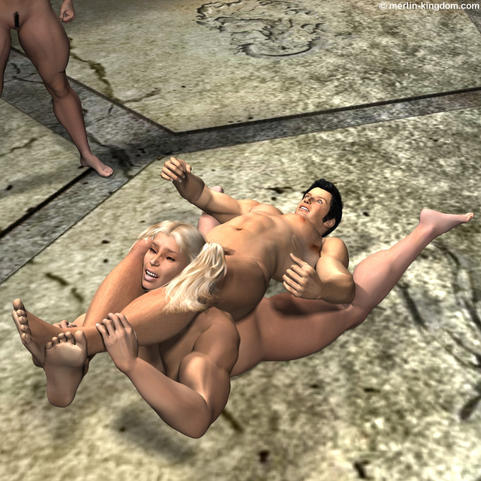 Tarzan pulls on Jhaynne's arms again, but he loses his grip and falls backwards, but still retains his head scissors.