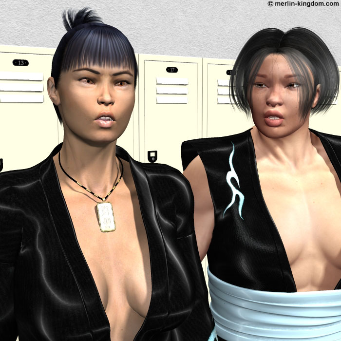 have you ever fought a Muay Thai match before?" "I wanted to wrestle the Spaniard, she wanted to fight me at Muay Thai. I respected her desire as she respected mine, so we agreed to do both. I have been training Muay Thai. I am confident that I will beat her at both." "What about the final "extreme" fight. That sounds like the sort of fight you had with the Korean which ended so badly for you." "The Spaniard and I have agreed that we will not aim to kill each other. That is all I will say!" "Thank you Midori. I will let you go to the arena now!" |