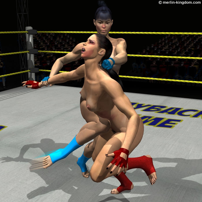 Midori spins her rival round, grabs her hair and slams her in the guts with her knee. Already Sancha is in trouble!