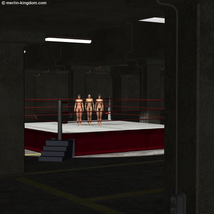 I looked ahead to the lit area and for the first time saw the 3 women that were waiting for us in the centre of a wrestling ring.