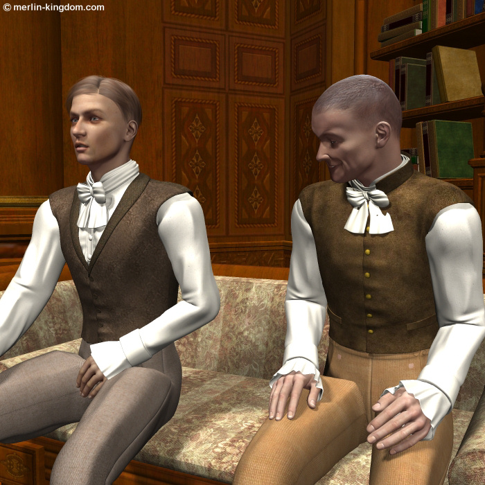 While the Britt was talking Maarten let out a soft gasp. Godfrey looked at the young Dutchman and saw that he had placed his left hand between his legs to hide a growing bulge in his pants. He was clearly very excited by the sight of these two near naked beauties preparing to do battle! |