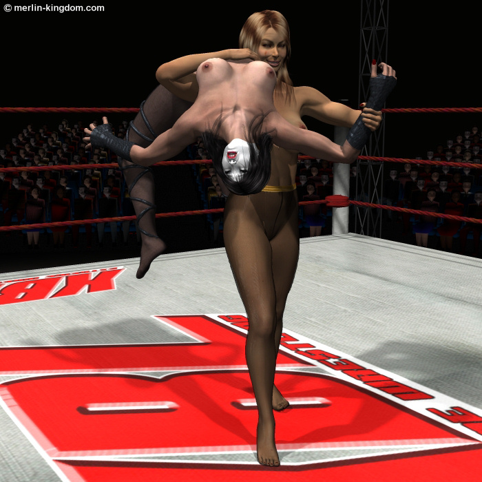 She's flipped Megumi up and over into a cross-shoulder back breaker!