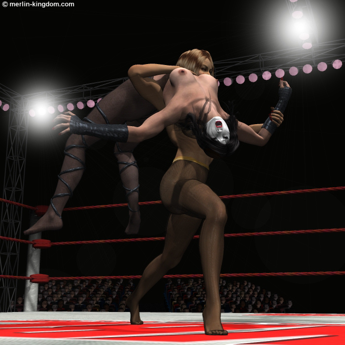 Arachna is bouncing up and down to painfully flex the Japanese fighter's back.
