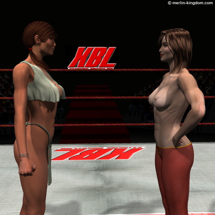 The two fighters have entered the ring and are staring silently at each other. They are both moving forward in an intense staredown.