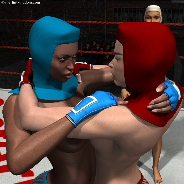 Suddenly they both gave up the test of strength and came together to waltz around the centre of the ring in a tight body-to-body hold.