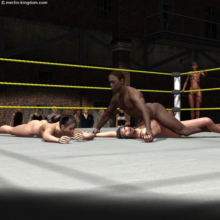 chink of light would stop the count. "ONE... TWO.... THREE..." The count stopped at three when Yoko managed to lift her right shoulder just a fraction of an inch off the mat. |