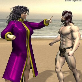He is soon confronted by an Amazon, who he defeats with one mighty