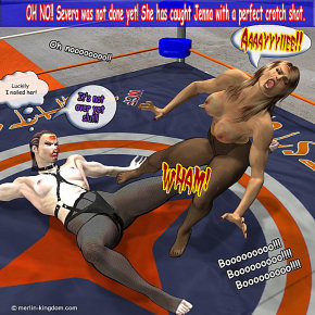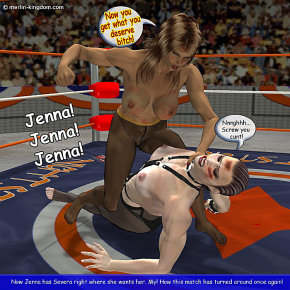 Ladies and Gents, we return to the main event of WCF NightStorm! 15 where Severa is defending her championship belt against Jenna, the Arachna. The fight started well for Arachna, but then Severa started to get the upper hand and as we rejoin the action Jenna lies semi-conscious on the canvas. It looks as if she is going to be the latest victim of the Goddess's wrath! Let's see the conclusion to this thrilling match! |