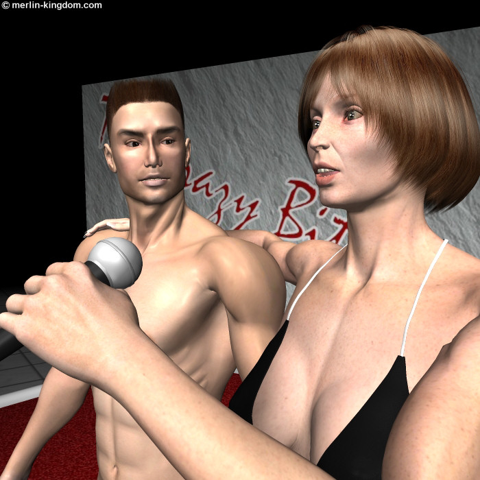 Celine waits for the noise to die down then continues: "He's been wrestling at school and college since the age of 14 and has done really well - he's in the state team now! A few years ago he found out that we wrestled naked here at the club and since then he's been badgering me to let him come here and fight some of you fine ladies in the nude. Of course I told him that there was no way that a teenage son of mine was going to come and fight any of you gals bare butt naked. But somehow he got me to agree that once he was out of his teens I would bring him here to try his skills on some of you. Now he's held me to the very letter of that promise, so here we are on the very day of his 20th birthday looking to see which of you gals is going to make this a birthday to remember! So which of you fine ladies is going to accept the challenge of fighting my son tonight?" |