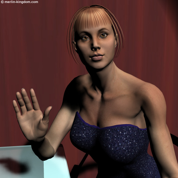 the table where Sam had been sitting. "Welcome Kim!" says Jerry as she raises her arm to acknowledge his welcome. "Maybe you'll be challenging the champ if Sam loses?" asks Jerry mischievously. "Maybe, who knows?" replies Kim with a little smile on her face. |