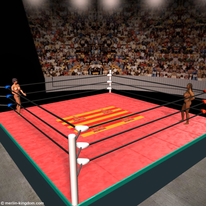 Both women face each other across the ring as they await the bell.