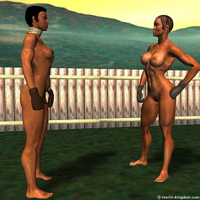 and the plantation owner or manager. Plantations take it in turn each month to host a evening of boxing where large sums of money are bet on the fighters - usually male slaves selected by the various Slave Masters for their strength and agility. But the highlight of the day's entertainment is a fight between two naked slave women. Turn are a small selection of thumbnails of the action: |