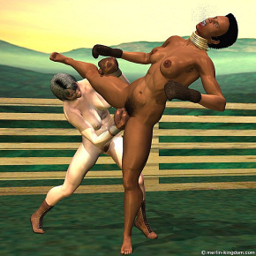 It is one month later and the venue for this month's stockade fight stands empty awaiting the arrival of the first pair of fighters. The word has got round that a white woman is to fight naked in the stockade, which has generated lots of interest and a large numbers of bets. Because of this the organisers have decided that the women should be the first to fight on this afternoon's card. Turn are a small selection of thumbnails of the action: |